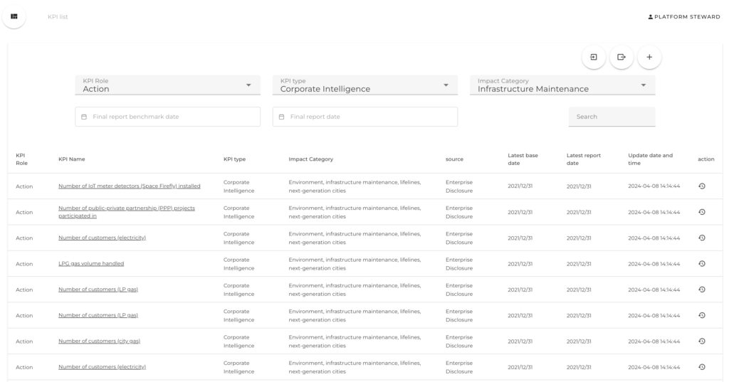 This is a group of functions that enables the use of information such as comparisons and analysis while searching and referencing the aforementioned data. At present, because there are not yet sufficient best practices for uses beyond pure reference, only search functions are provided at the start of the pilot. Through verification and feedback during the pilot period, more advanced functionality (or API connections with external tools) will be implemented. Some additional functions (e.g., simulations for scenario analysis) are available in paid environments.