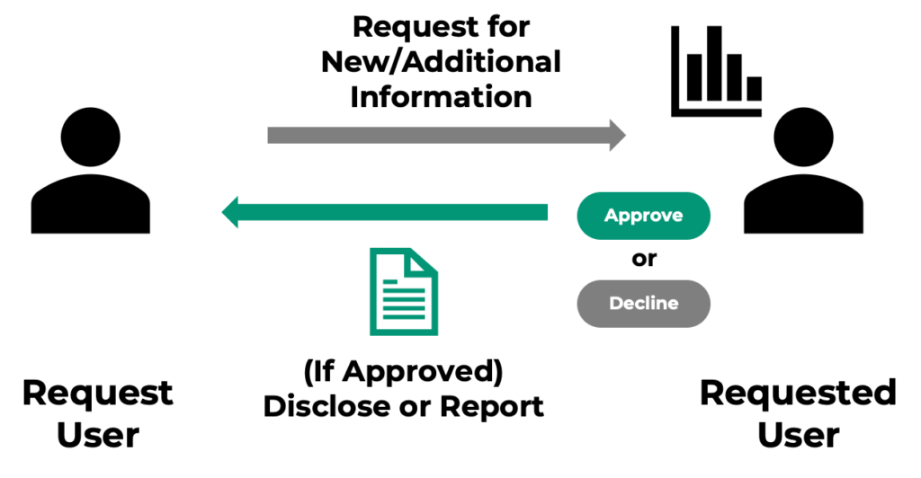 Users can request additional information from users who are reporting or disclosing specific information. The user receiving the request can accept or decline the request as necessary.