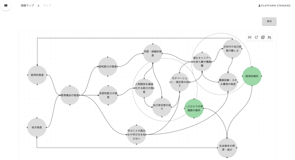 解決を狙う課題が生み出される構造を視覚的に整理することができます。