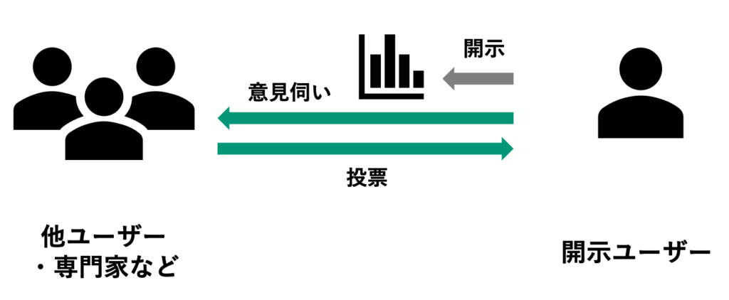 ユーザー(主に情報開示者・情報所有者)は特定のインパクトに関する情報について、その正当性(企図しているインパクトや測定している指標、計算の結果や考え方などが正しいかどうか)や方向性(複数の選択肢があるようなケースにおいて何を重要視するか)に関してプラットフォーム上で投票をしてもらう場を設定できます。これらは、ユーザーにとっては不特定多数の方や組織からのフィードバックを通じて情報の信頼性を高めたり、当該インパクトについての多様な理解をしたりすることにつながります。一方で、投票参加者にとっても貴重な意見表明の機会となると同時に、場合によってはインセンティブが設定されます(詳細は別章「ポイントプログラム」を参照)。 投票は択一形式などに限定されず、一般的なアンケートのような項目も設定可能です。投票の対象となる情報のプラットフォーム上でのユーザーのみが本機能の管理権限を有し、情報を有するユーザーが自身で立ち上げ、ユーザーによってのみクローズ可能です。また、この投票に参加できるユーザーはユーザー種別(詳細「ユーザーの種別」を参照)単位で設定可能で、投票を立ち上げるユーザー自身が設定・変更できます(例えば、一般ユーザーに関しては除外せずに分けて投票結果を認識する、など)。投票者に関しては匿名投票となりますが、投票結果とアラインしたインセンティブが設定された場合など、投票した内容に関する情報が本プラットフォームの機能において正当に利用されるケースがあります。